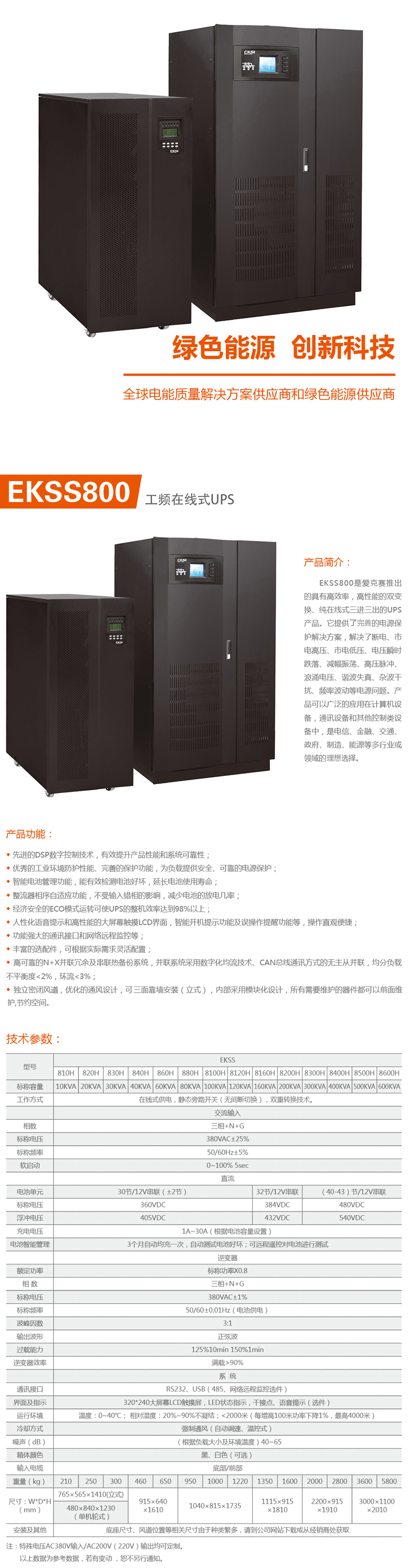 EKSD800三进单出工频在线式UPS不间断电源