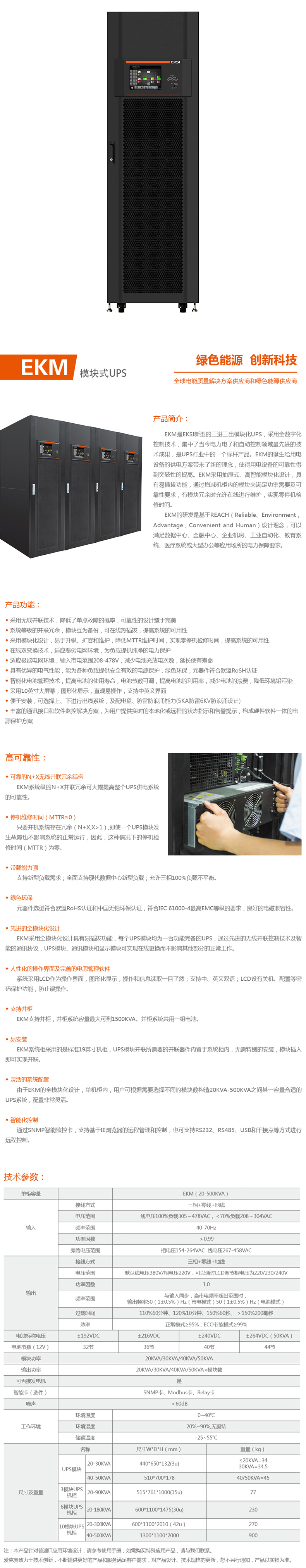 EKM三进三出第三代模块式UPS不间断电源